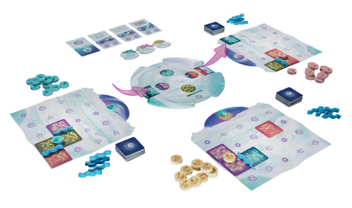 Carefully choose the Forest tiles by sliding them of the central board and arrange them as best you can on your personal board to accommodate your Animal Spirits.